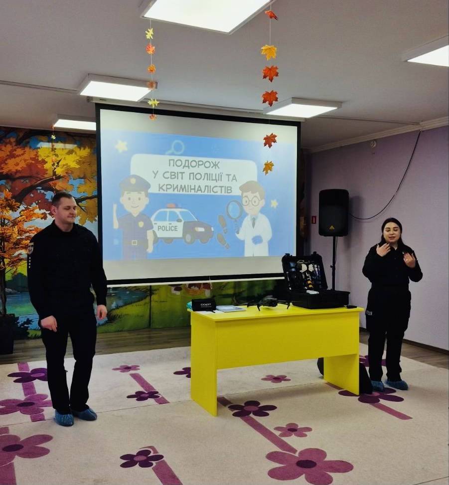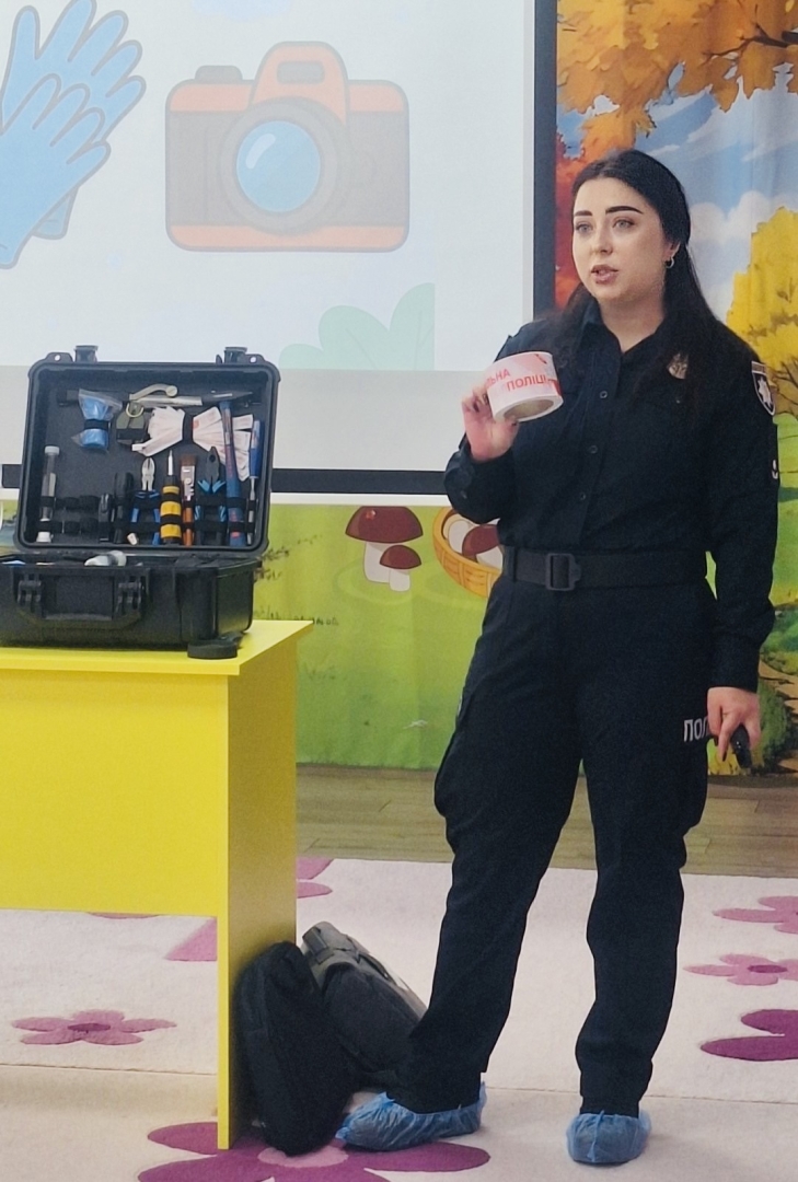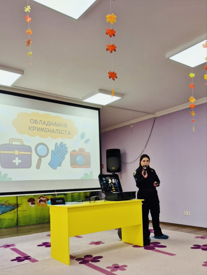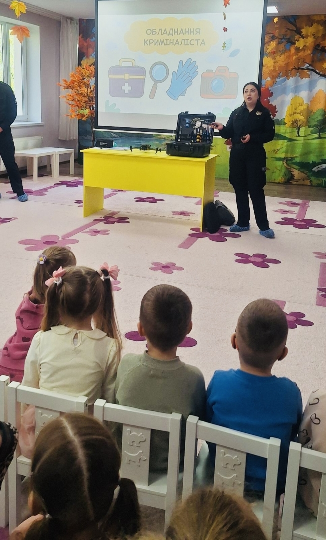 Під час зустрічі діти познайомилися з важливою та відповідальною професією поліцейського і криміналіста, дізналися про правила поведінки в суспільстві, необхідність дотримання законів України, а також про функції криміналістів на огляді місця події — як вони шукають і досліджують різні сліди.