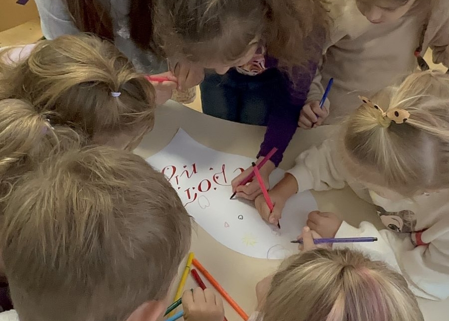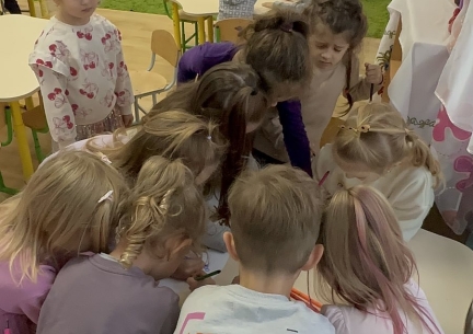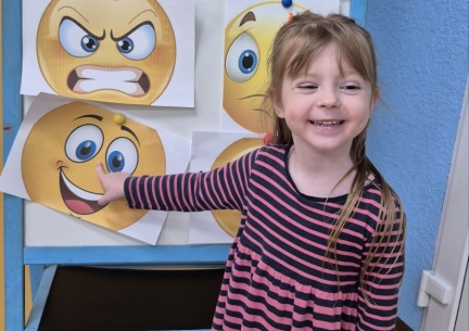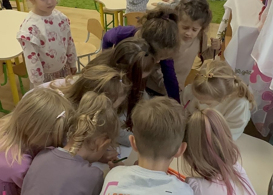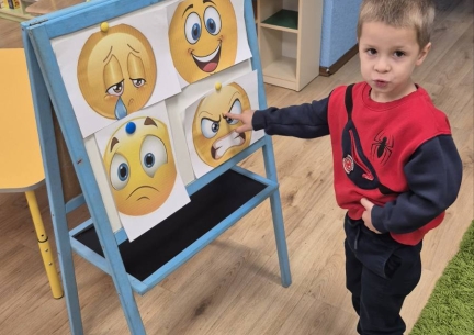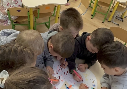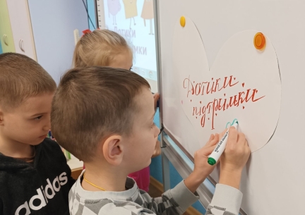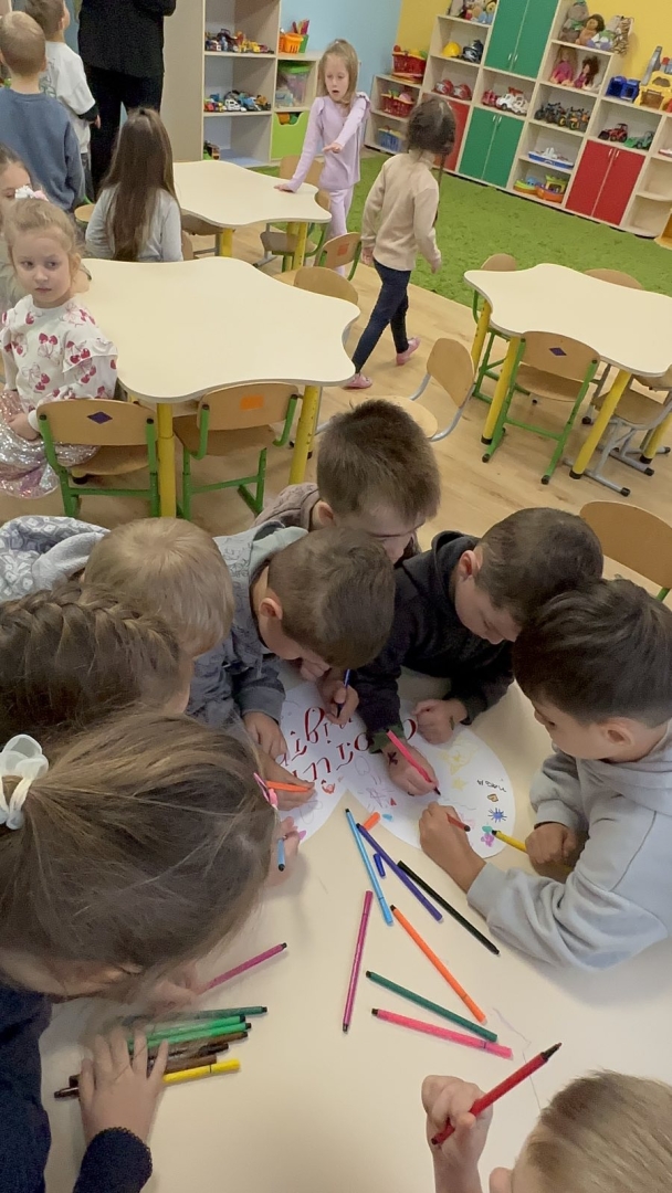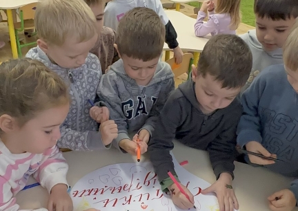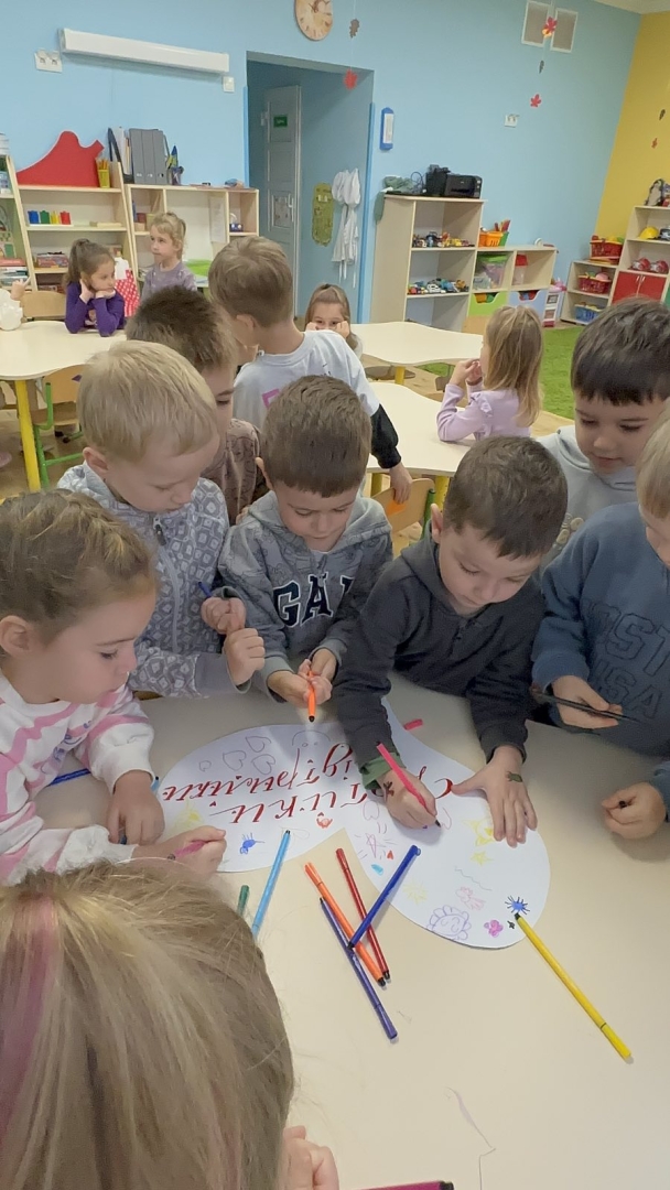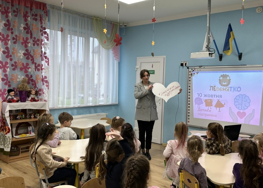 Для дітей старших груп «Перлинка» та «Світлячок» психолог провела інтерактивне заняття «Дотики підтримки», під час якого малята говорили про емоції, вчилися розуміти почуття інших і створювали спільну «Карту підтримки» — символ дружби, доброти й емпатії.